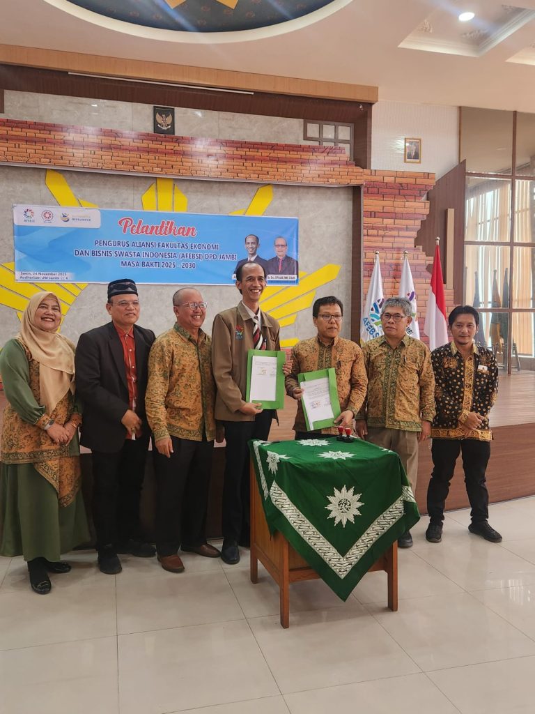 afebsi.or.id – Bertempat di Auditorium Universitas Muhammadiyah Jambi (UM Jambi), Ketua Umum DPN AFEBSI, Achmad Rozi melantik dan mengukuhkan pengurus DPD AFEBSI Provinsi Jambi (24/11/2025).